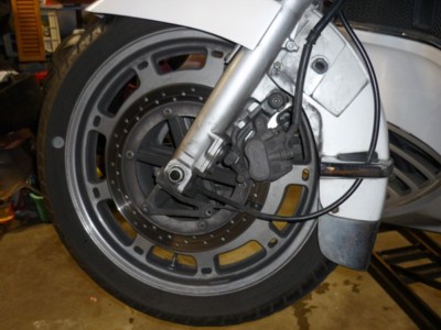 As mentioned on the summary page, I remove both calipers. This isn't necesssary according to the book, but it gives me more play when pulling out the wheel.