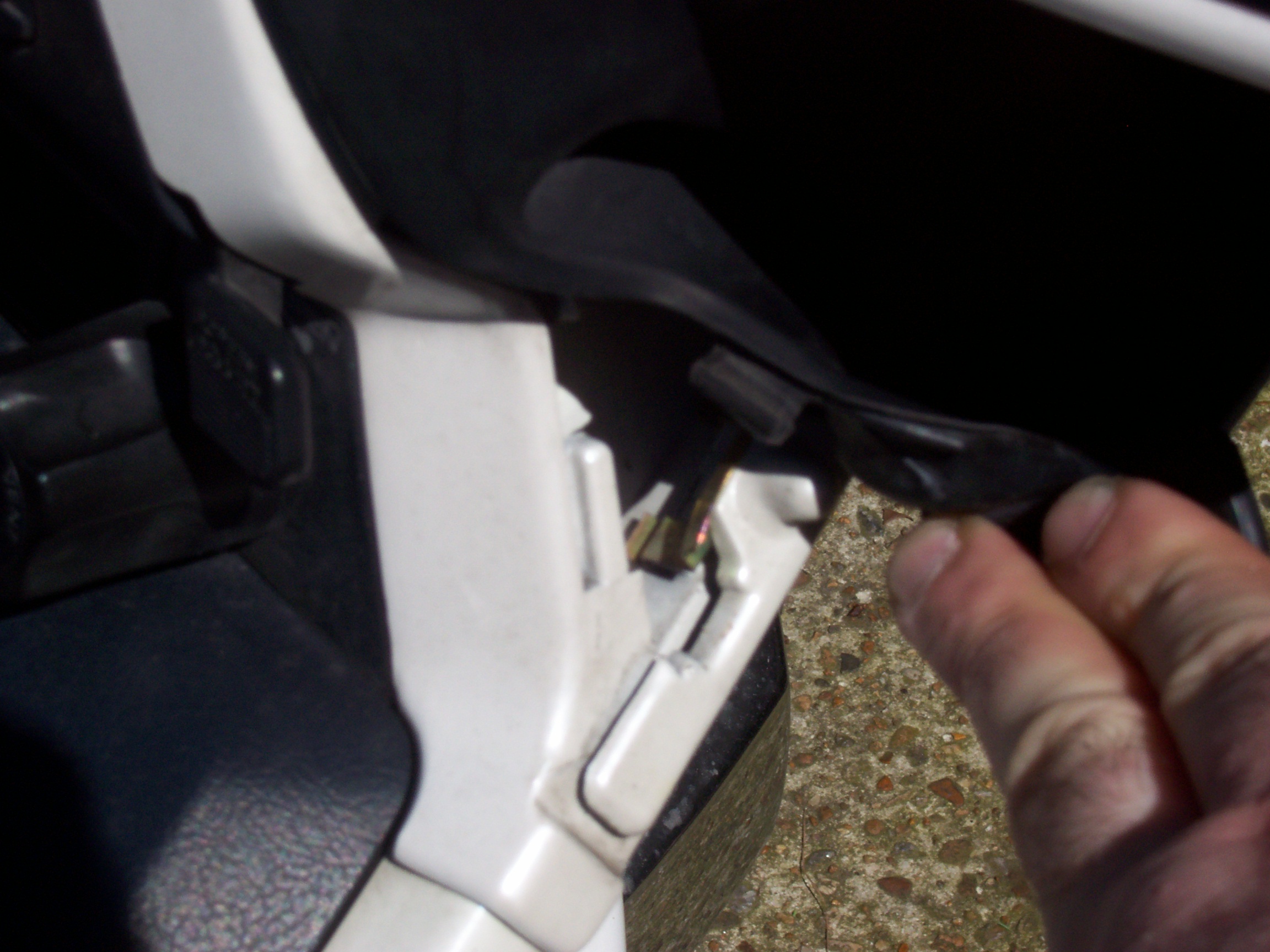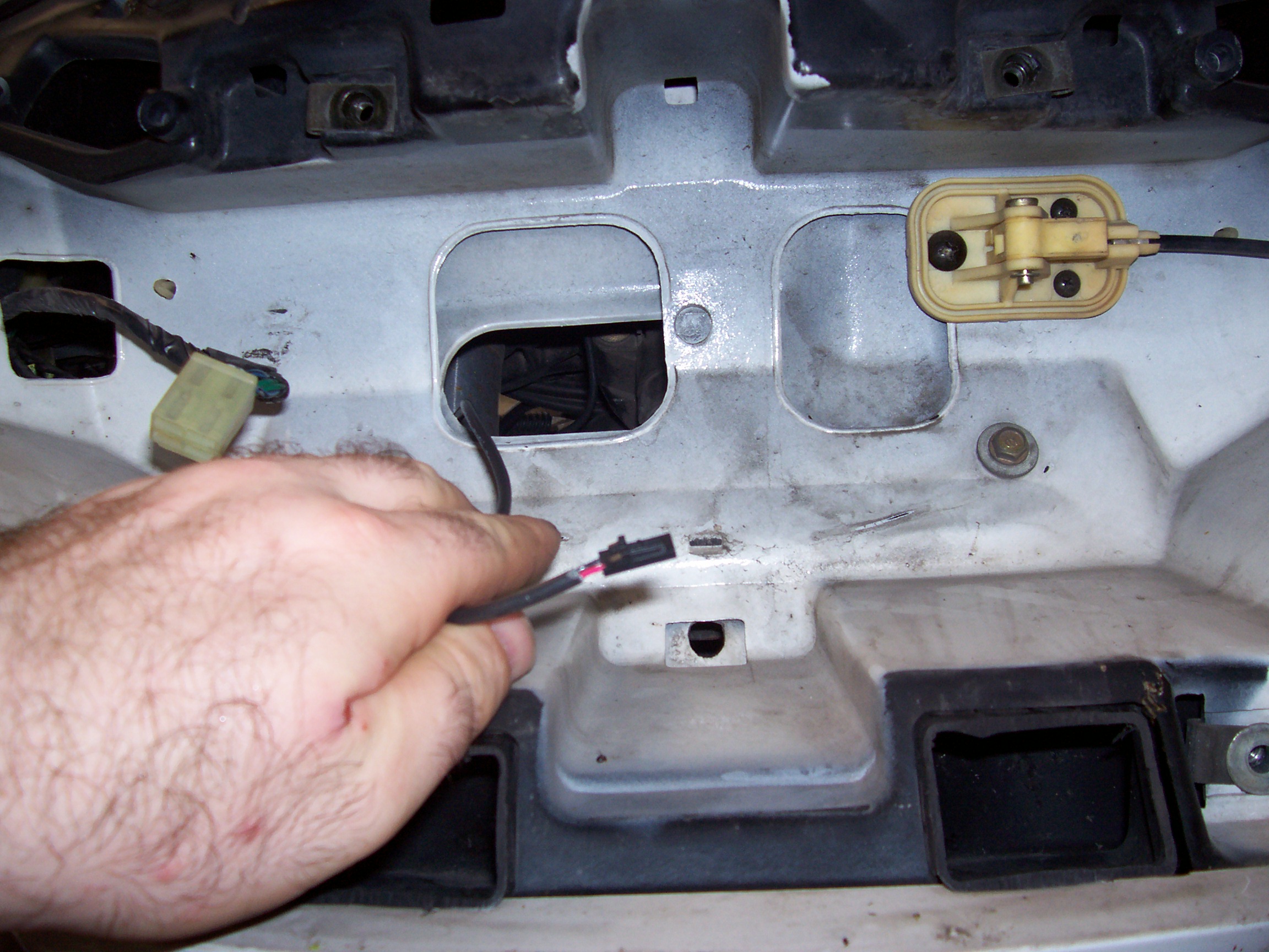 | The headlight slides out. | The plug where the modulator plugs in. |