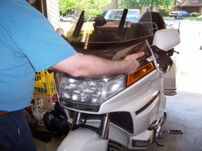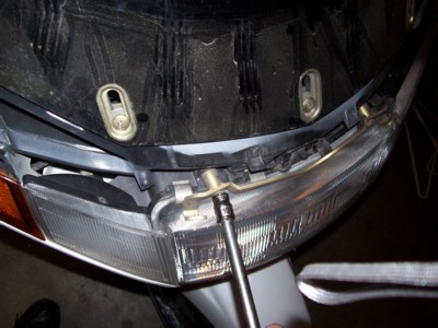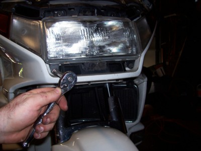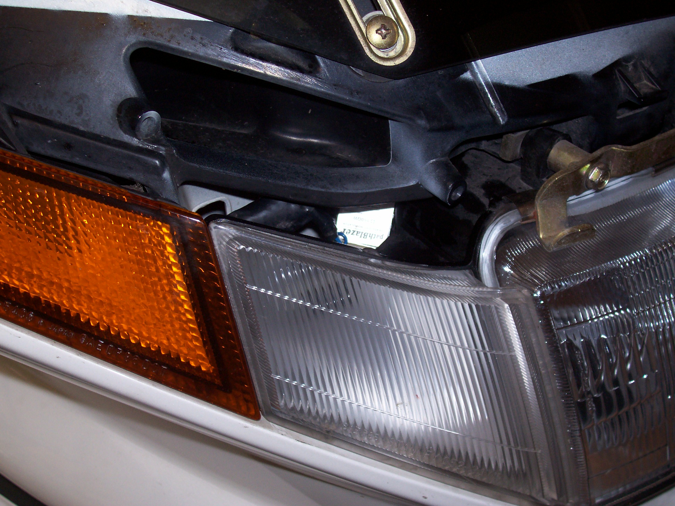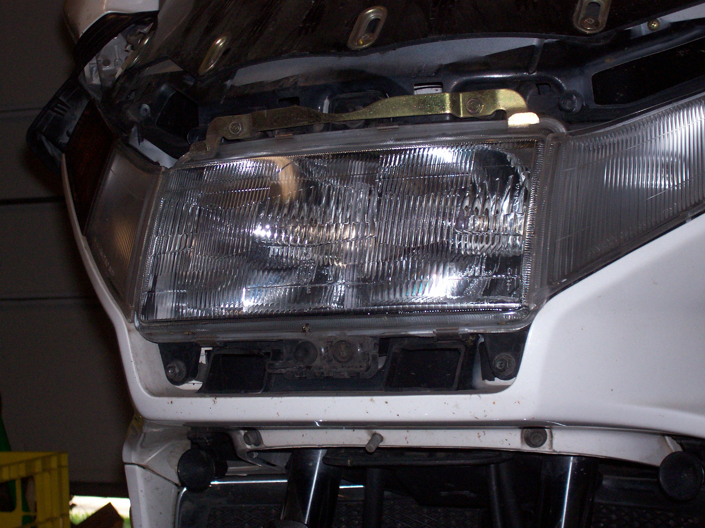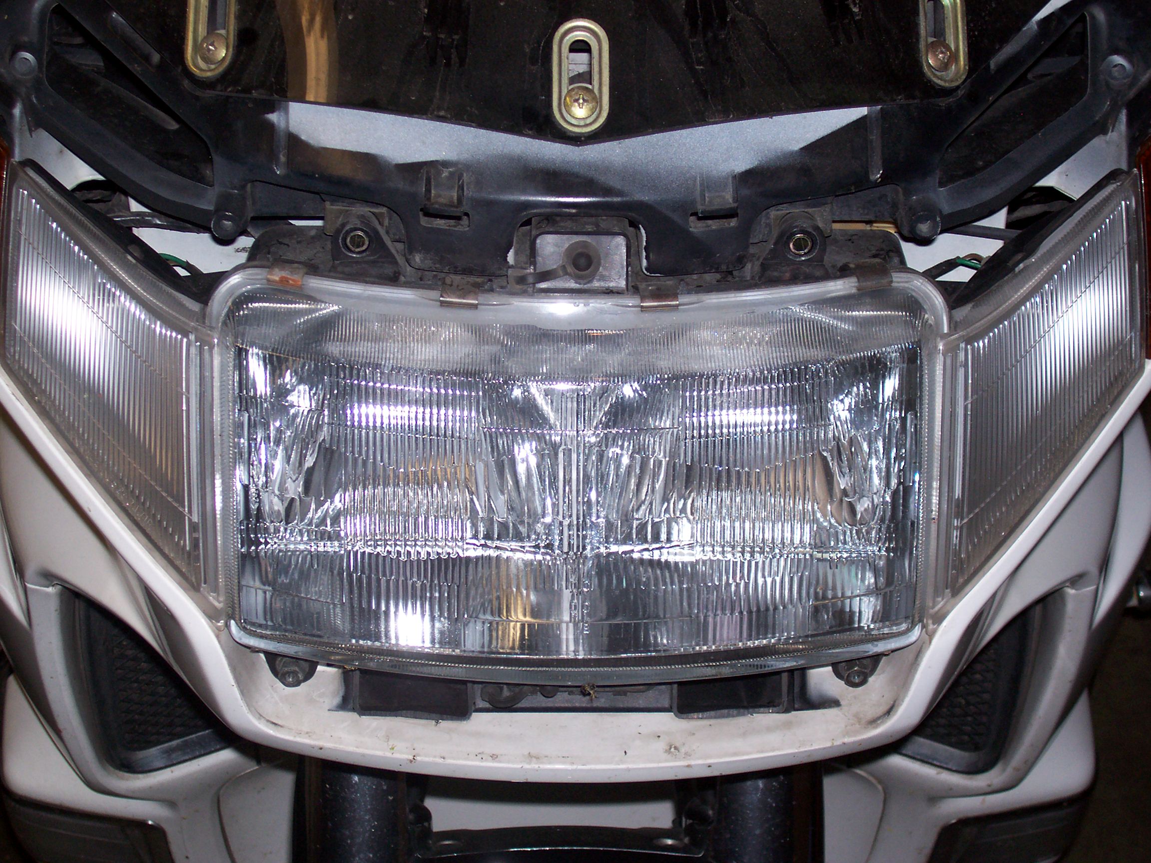 | Plugged in. | Headlight back in place. You can see the modulator hanging. |