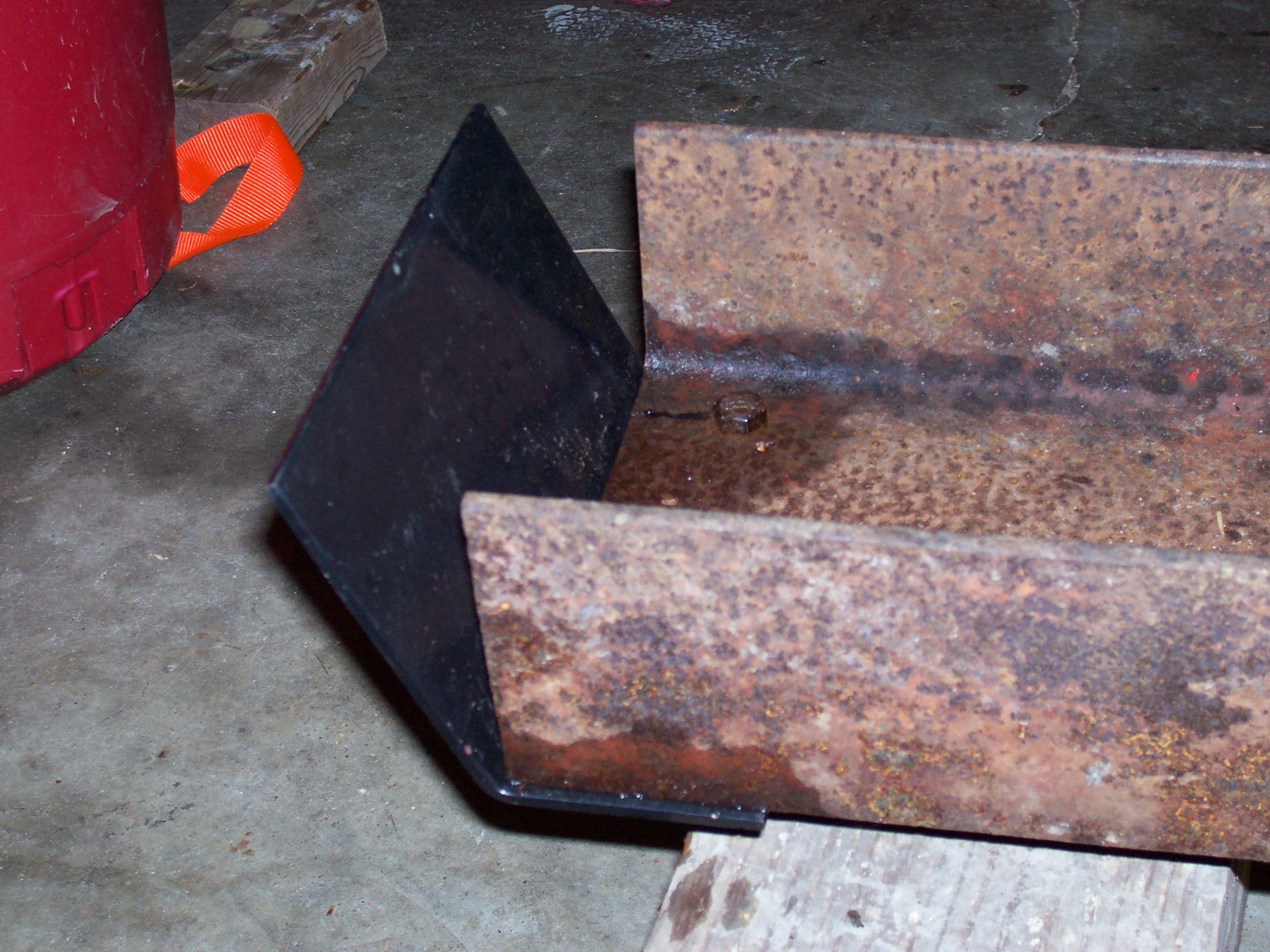 Right: From the underside, the piece of angle iron for extra reinforcement.