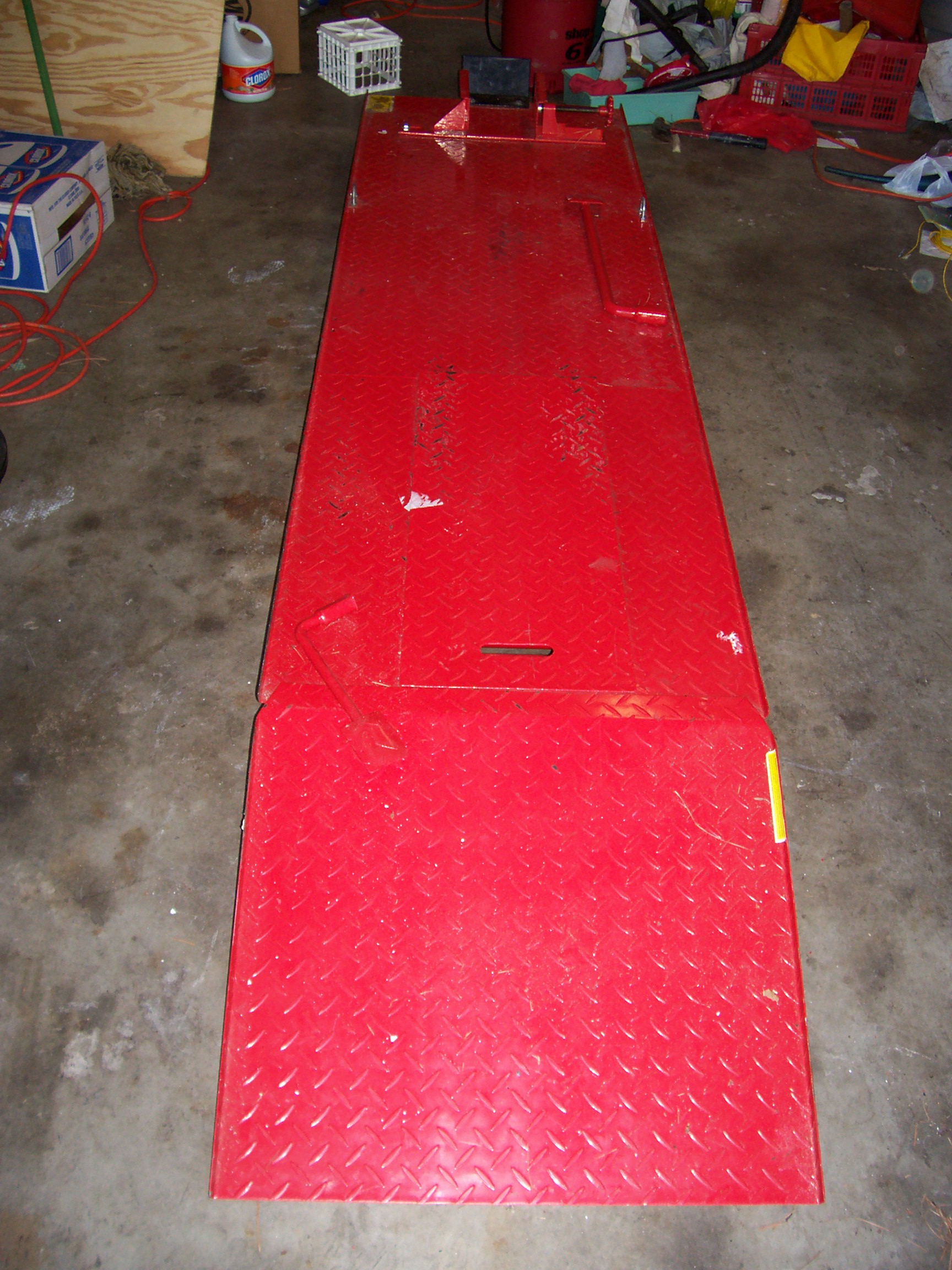 Then I saw another similar lift using a pair of 2 foot long angle irons set about 6 inches apart and some plywood for decking.