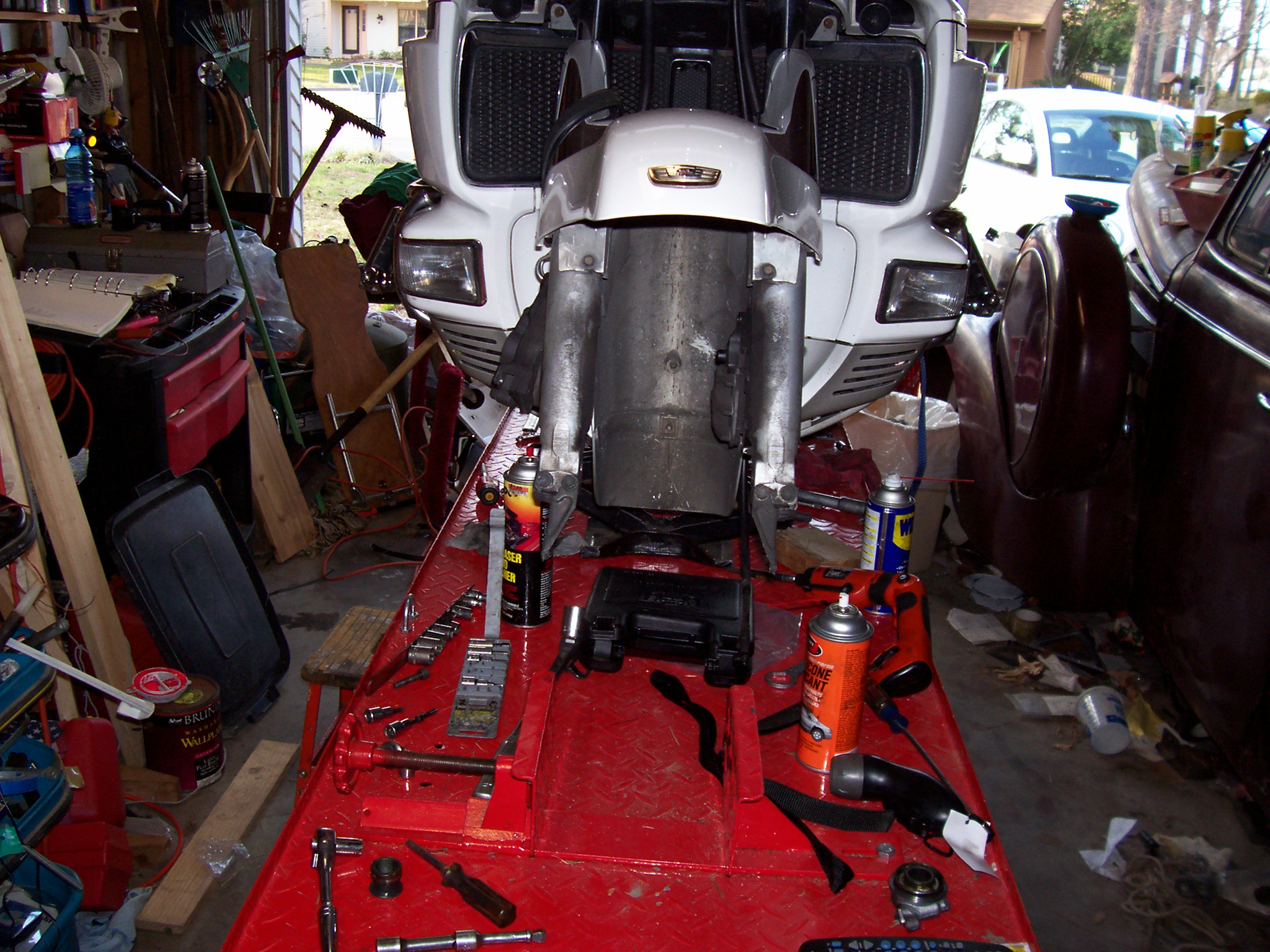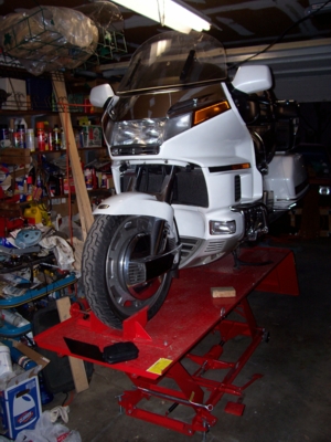 As mentioned above, the lift isn't long enough to get full use with a Goldwing. I had an idea to extend the lift to the front with a plate of some kind.