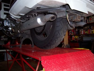| Note the hitch preventing the removal of the wheel through the rear. |