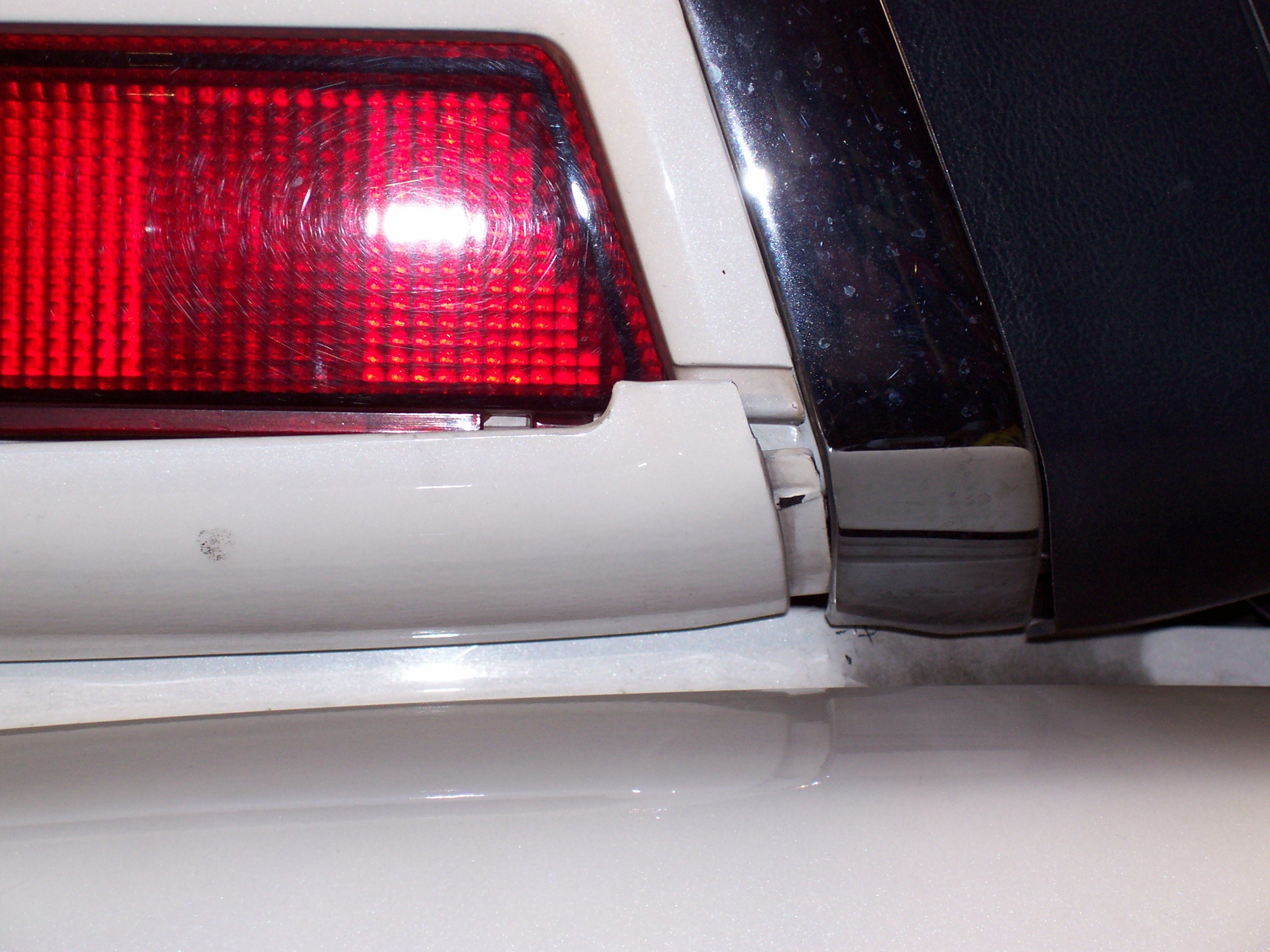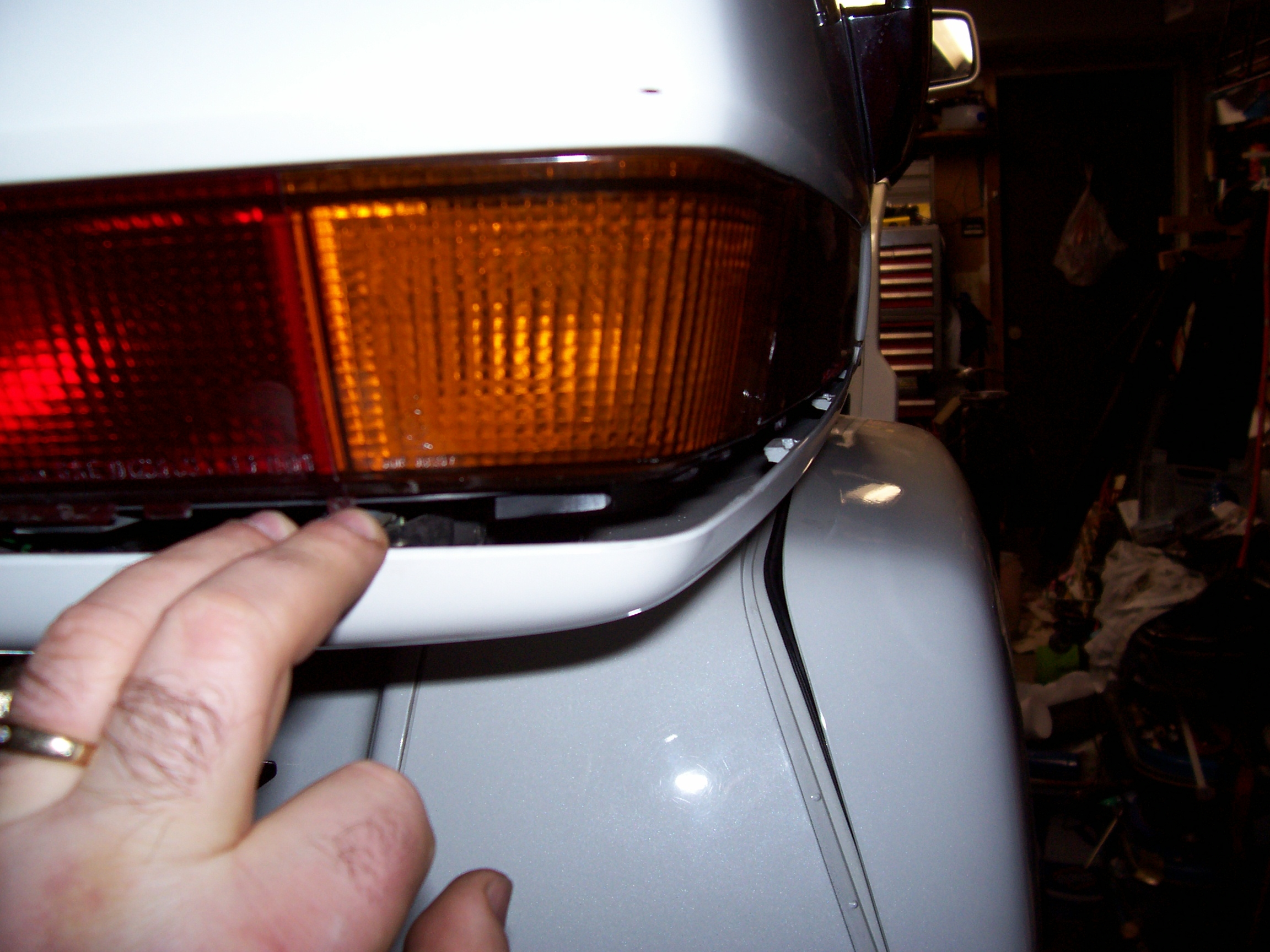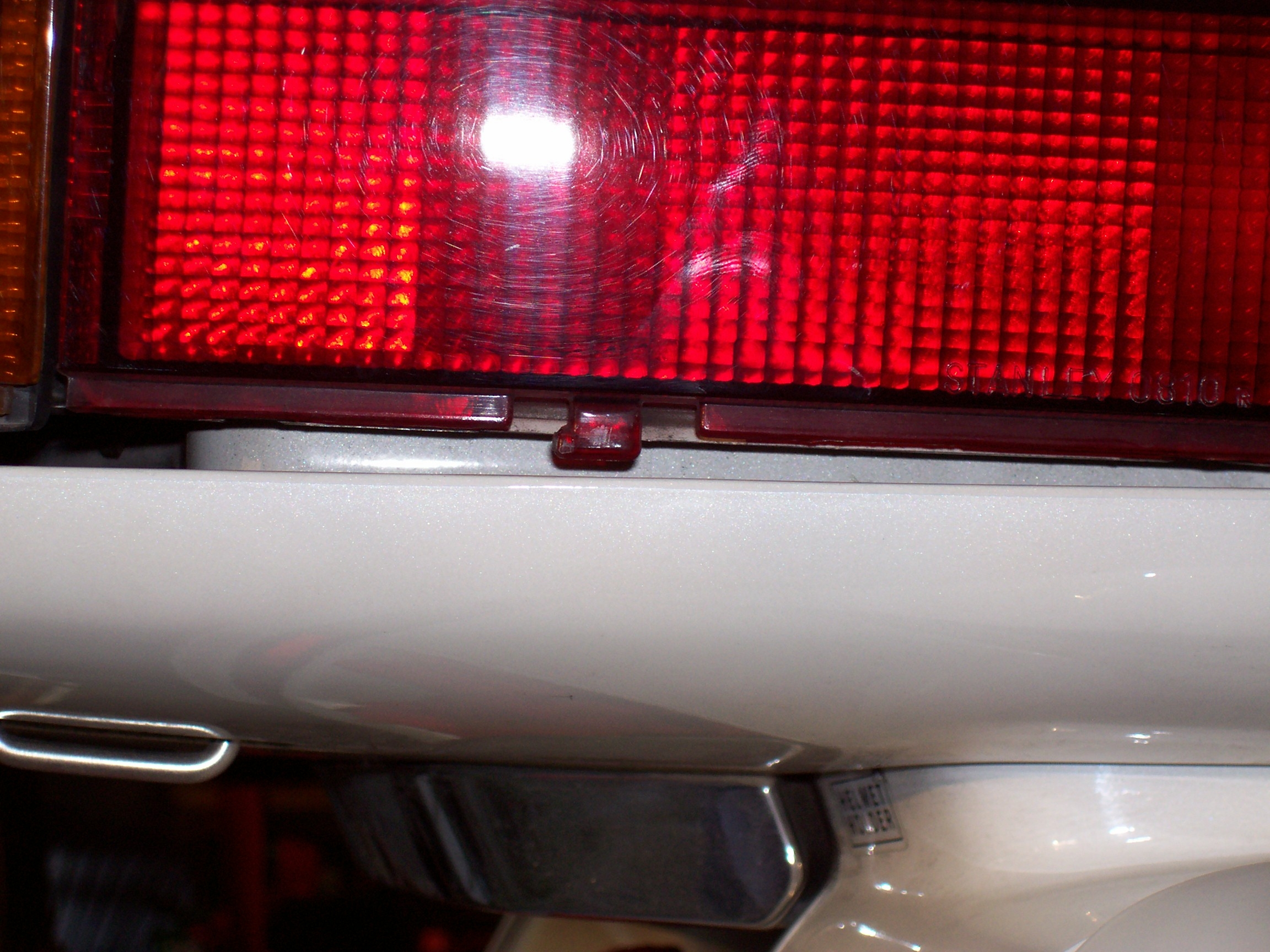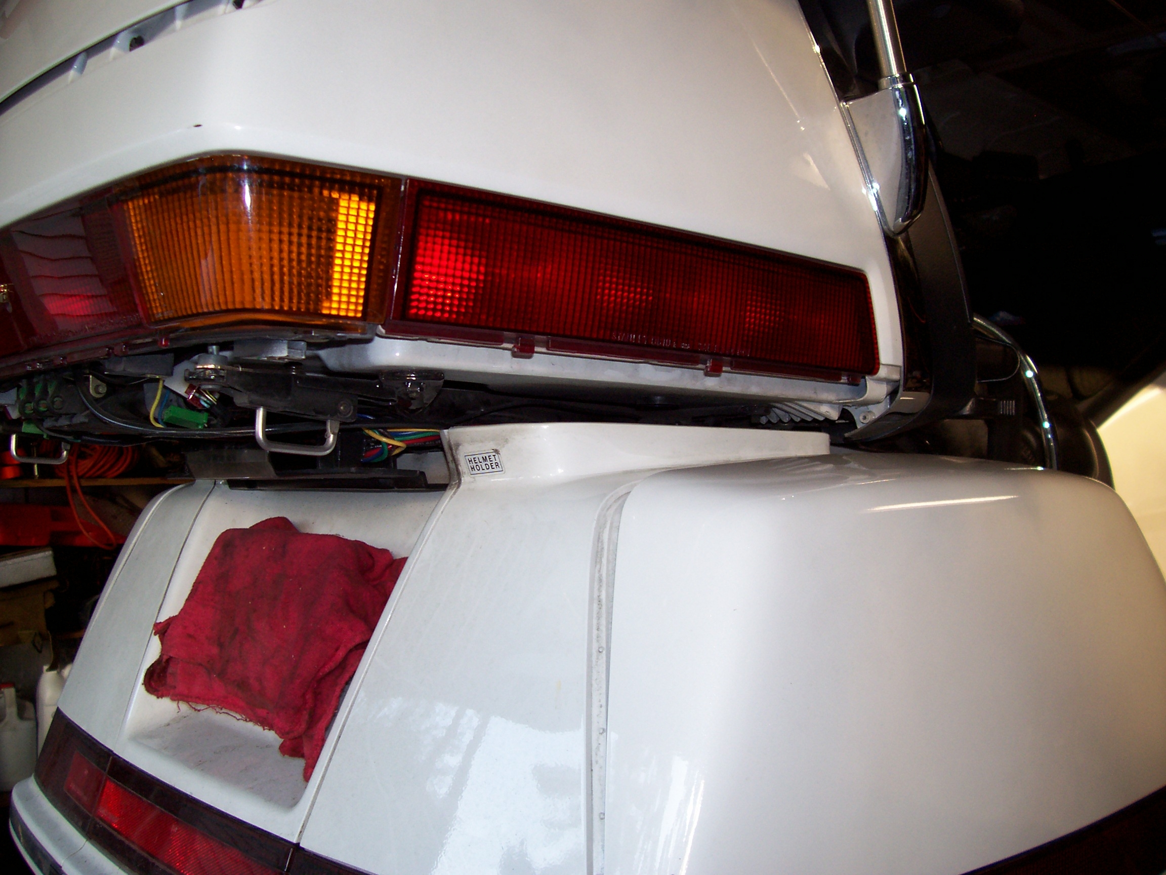 The piece is now removed, exposing the top edge of the saddlebags. |