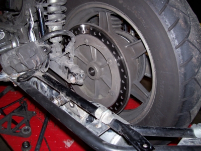 At this point, I take the wheel and coupling unit to the Honda dealer and have them install a new tire and valve stem and balance it. Also they clean the coupling and re-grease it for me.