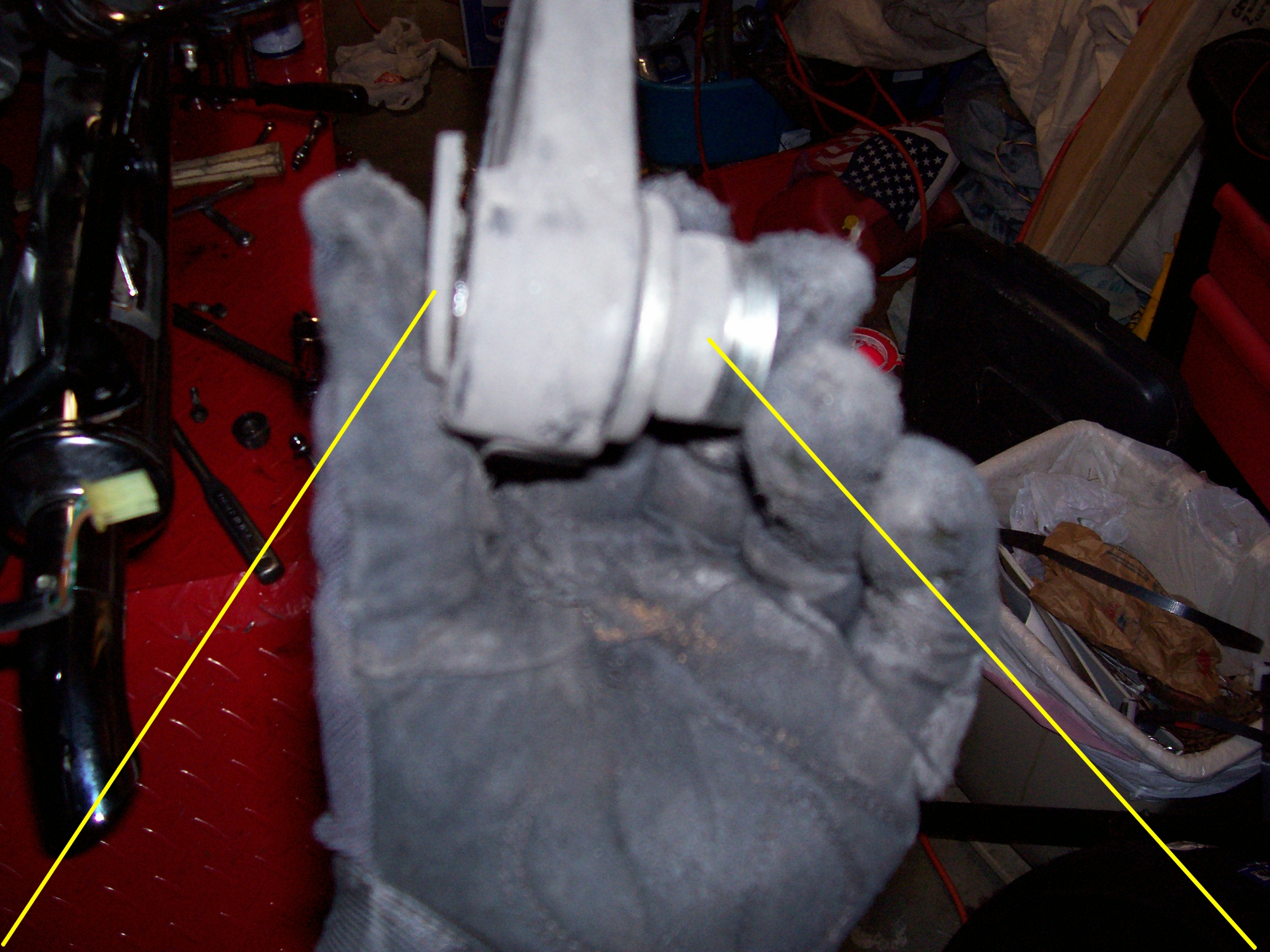 There is a washer that will drop out, then remove the caliper bracket and the collar that goes into the wheel.