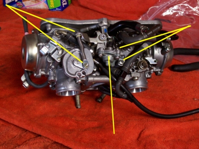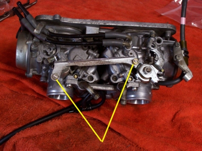 Next flip the carbs so that you can remove the bar from the front: