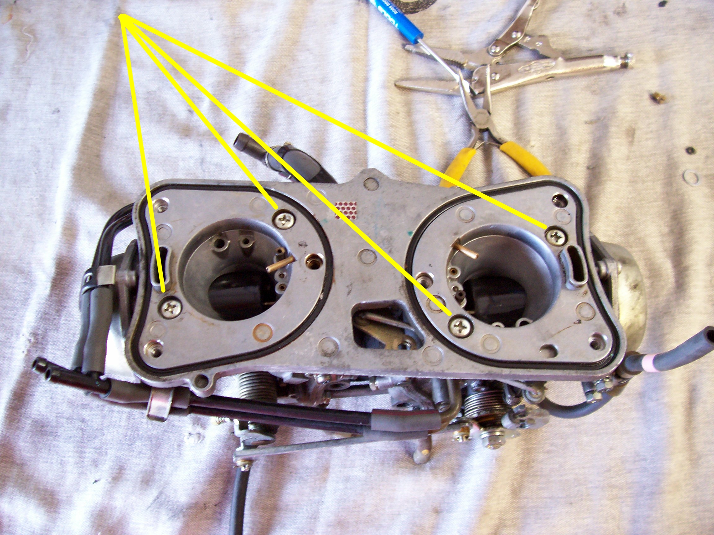 This is the top of the carbs with the top plate removed.