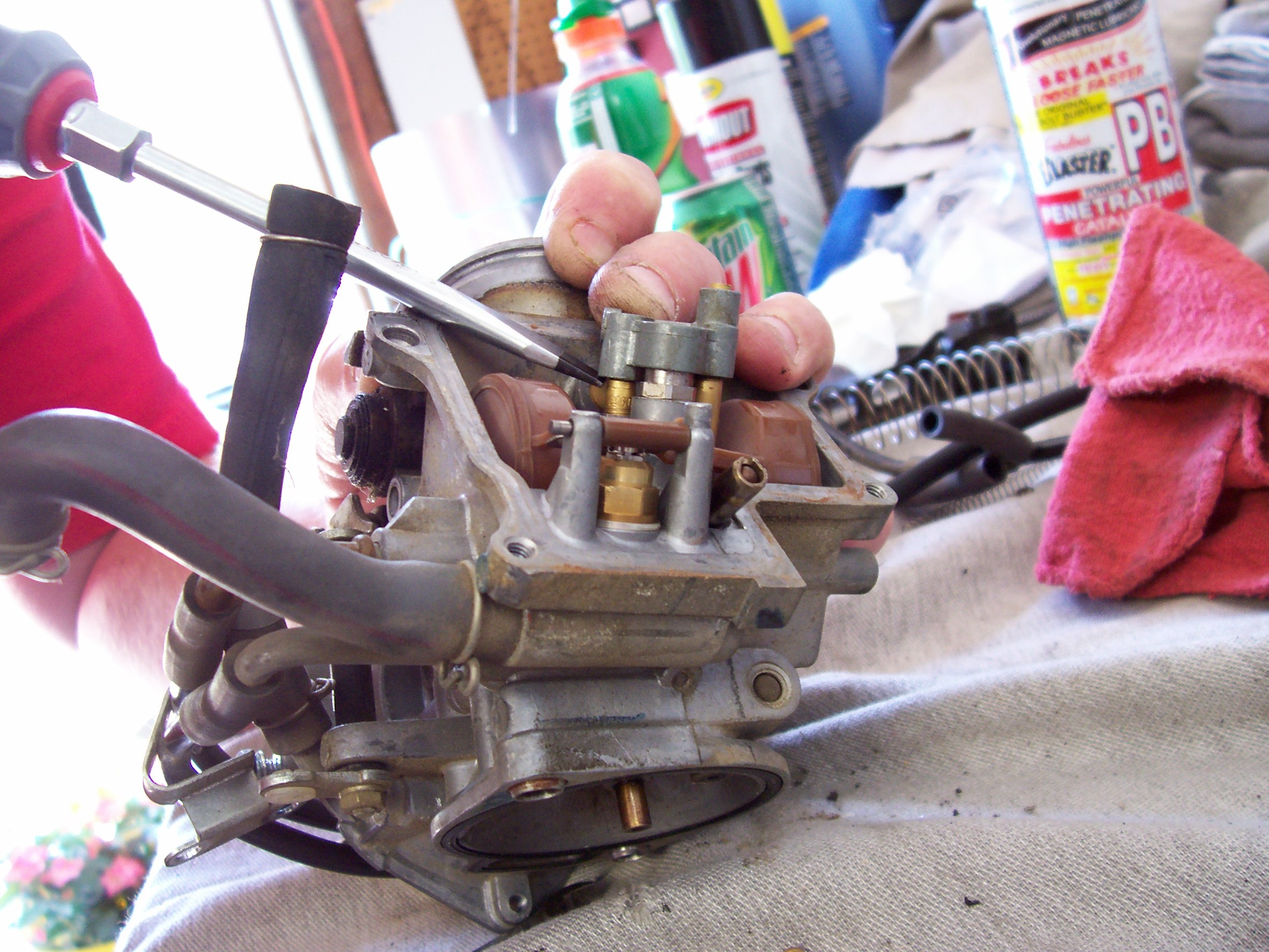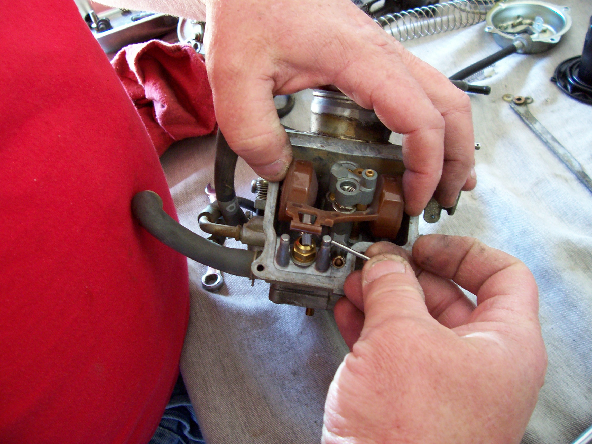 If you haven't worked on carbs before, keep in mind, never seat the pilot with any force. the point is fine and can break off or otherwise be damaged. When removing the pilot, count the number of turns it takes to seat it, but only turn it in until it gently seats. This way when you reinstall it, you turn it in until it gently seats, then back it out that previous number of turns and it will be in the same position it was when you started.