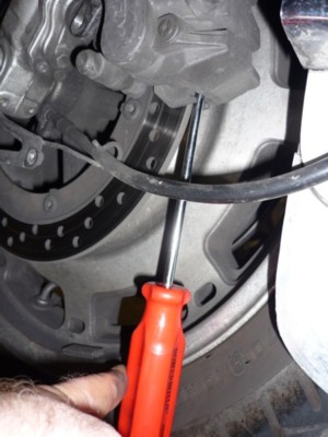 | You may have to persuade the caliper to come free. |