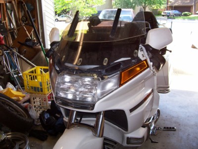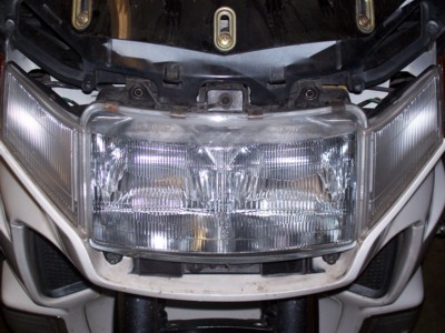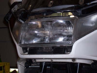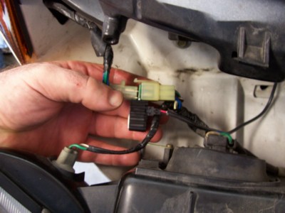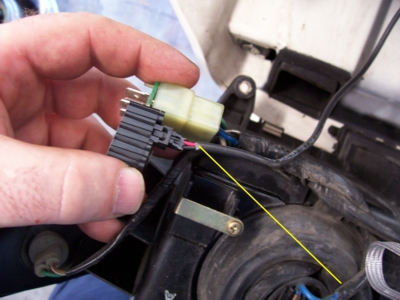 | Plugged in. | Headlight back in place. You can see the modulator hanging. |