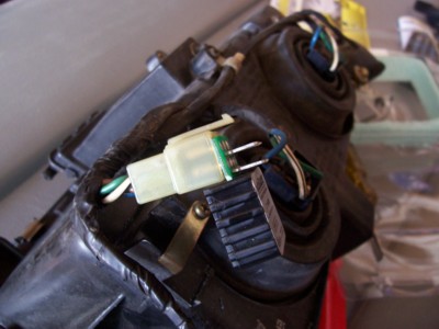 | The headlight slides out. | The plug where the modulator plugs in. |
