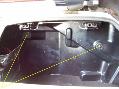Inside each saddle bag there are 4 bolts holding it in place. There are two on the back and two on the bottom. Remove all 4 bolts.