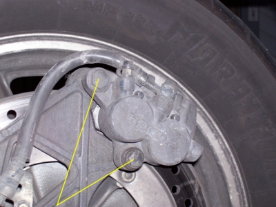 Caliper slide bolts. Remove both bolts to remove caliper.