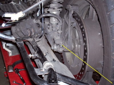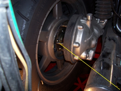 There is a washer that will drop out, then remove the caliper bracket and the collar that goes into the wheel.
