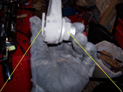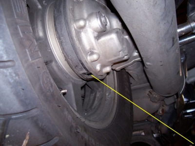 If it turns out that the coupling is staying with the final drive, there is a hole in the bottom of the final drive and you can stick a screwdriver up in between the final drive and coupling and pry the coupling free with the wheel. If this is the case, you will have to work at it. Turn the wheel a bit at a time as you pry at each pin.